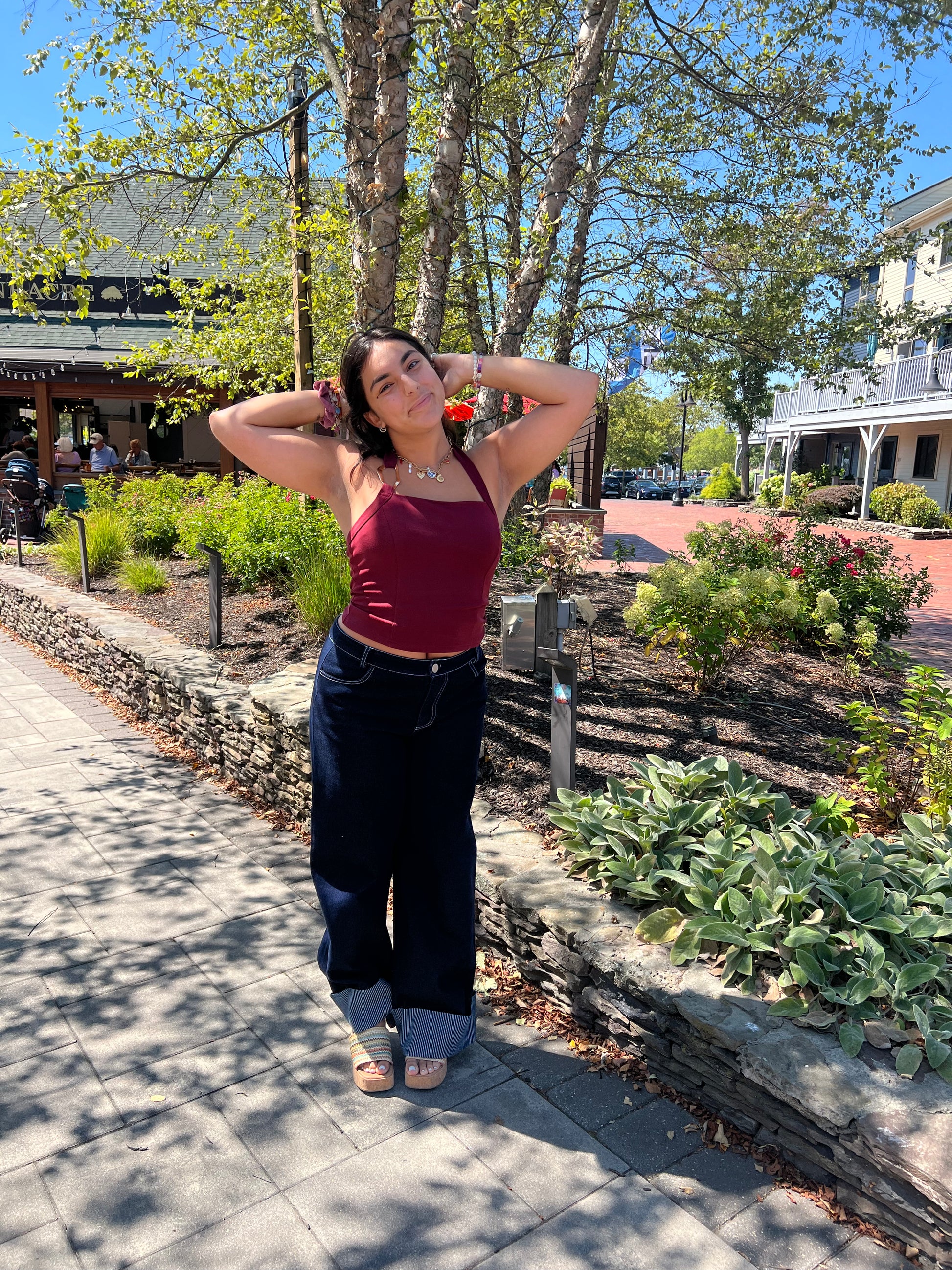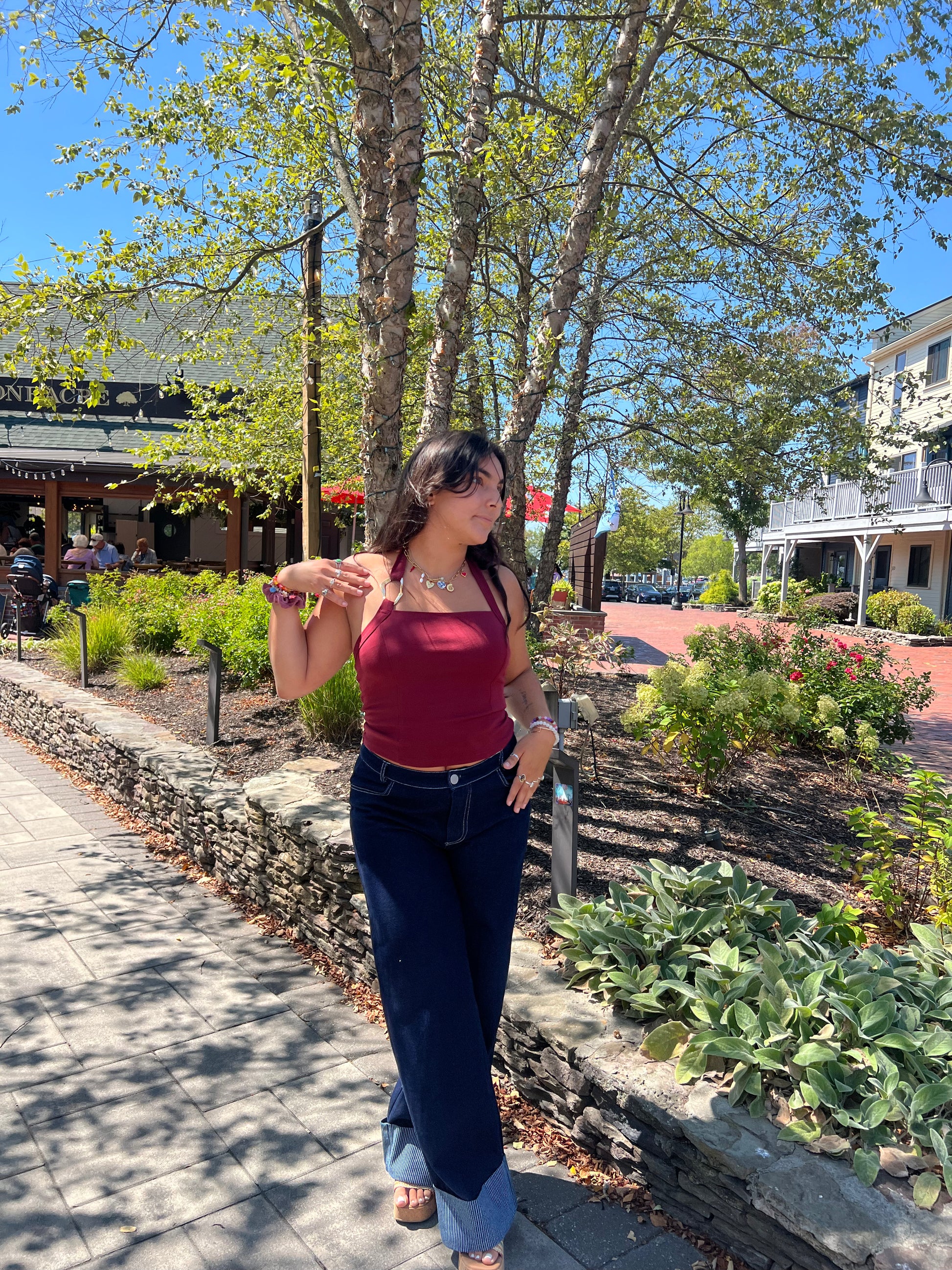 This charming burgundy halter top features a delicate gold piece that adds a subtle touch of elegance. Its soft fabric and flattering design make it an easy choice for both casual days and special moments, offering a sweet and stylish look you'll love.