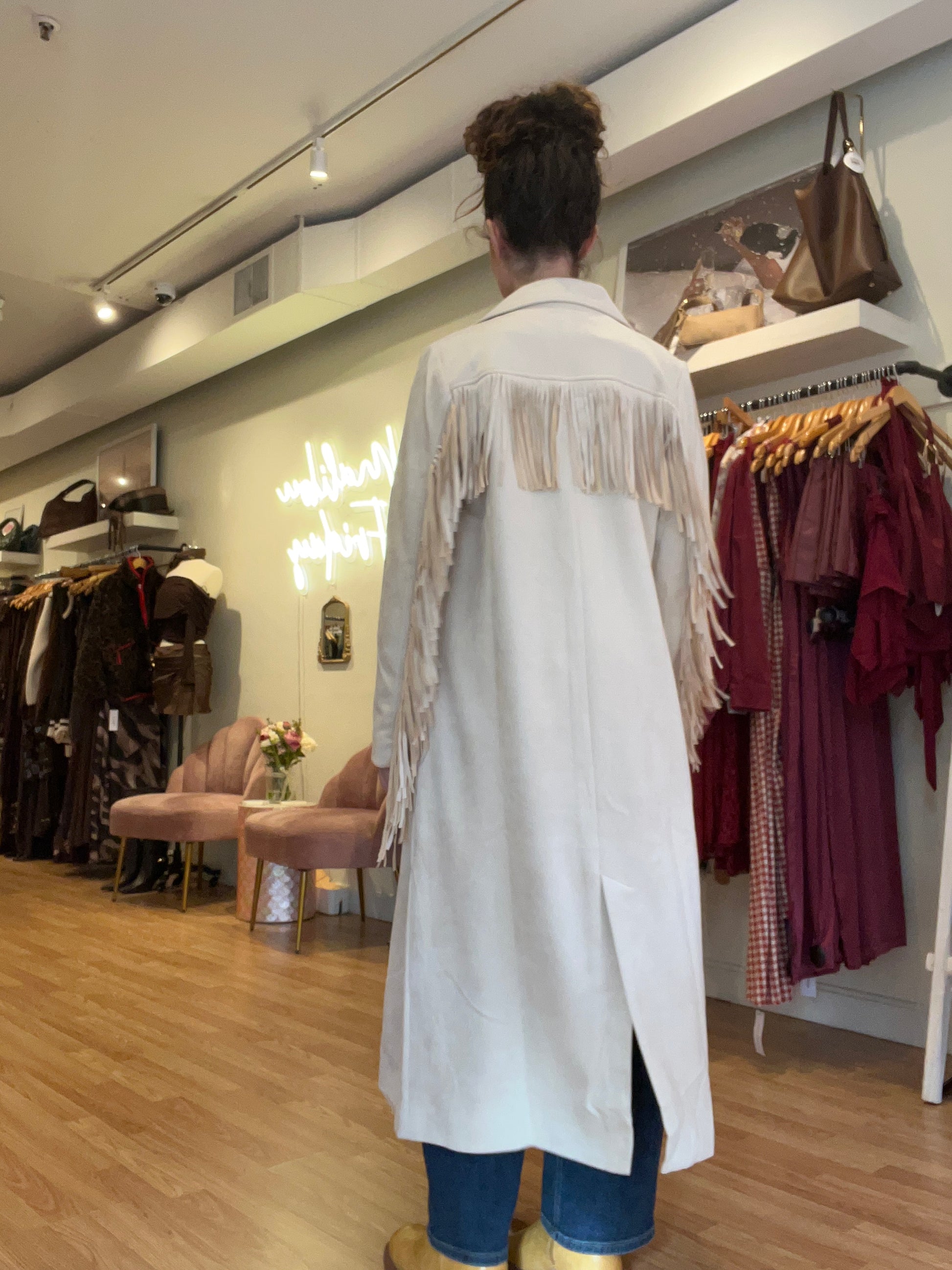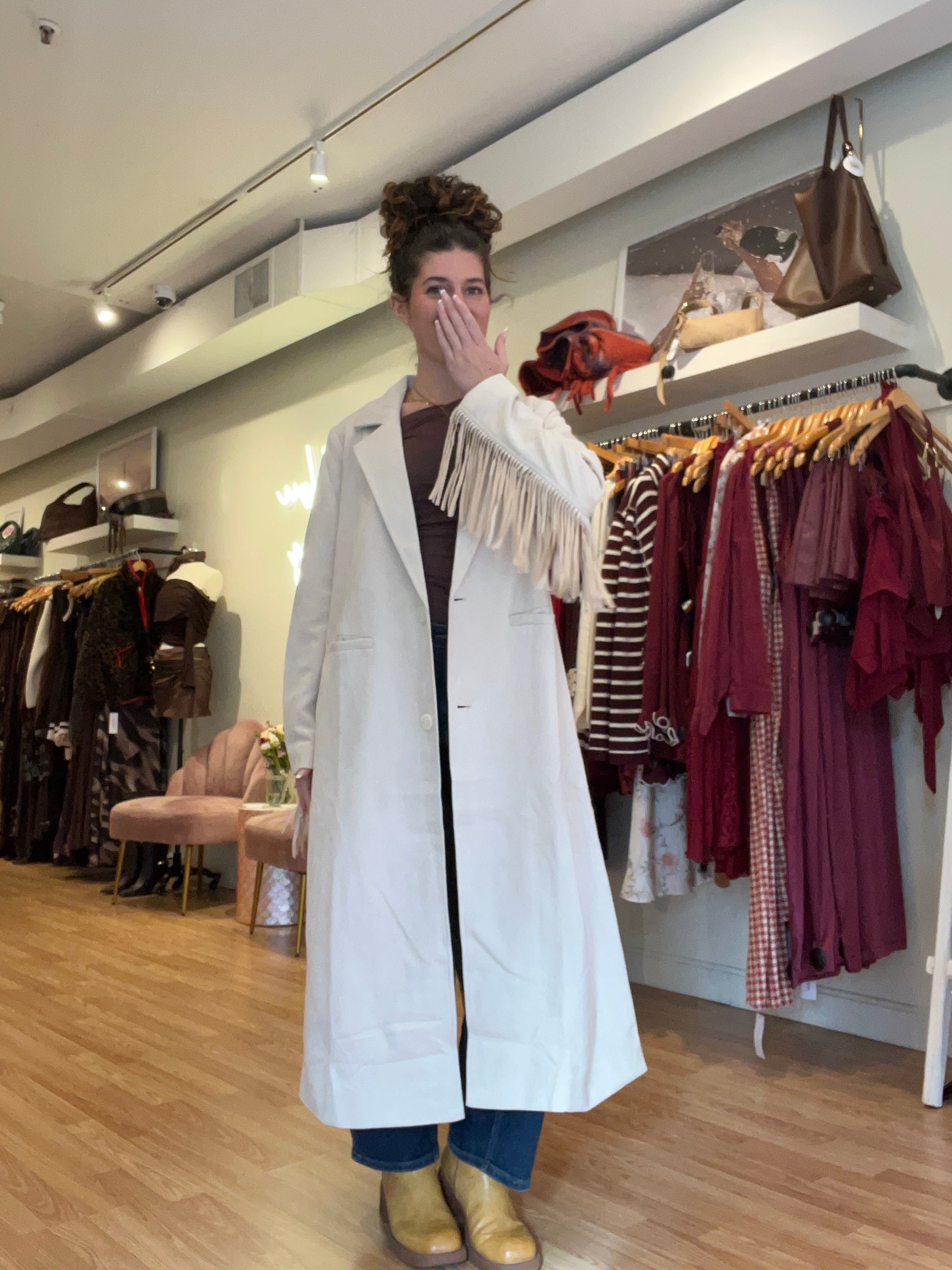 Saddle up in style with the Country Girl Jacket—your new go-to for those crisp, breezy days ahead. This statement piece features eye-catching fringe that adds movement and texture to any look. Throw it on with cowboy boots for an authentic Western vibe or pair it with a sharp heel to turn heads. Whether you're heading to a rodeo or a night out, this jacket lets your personality shine through with effortless flair.