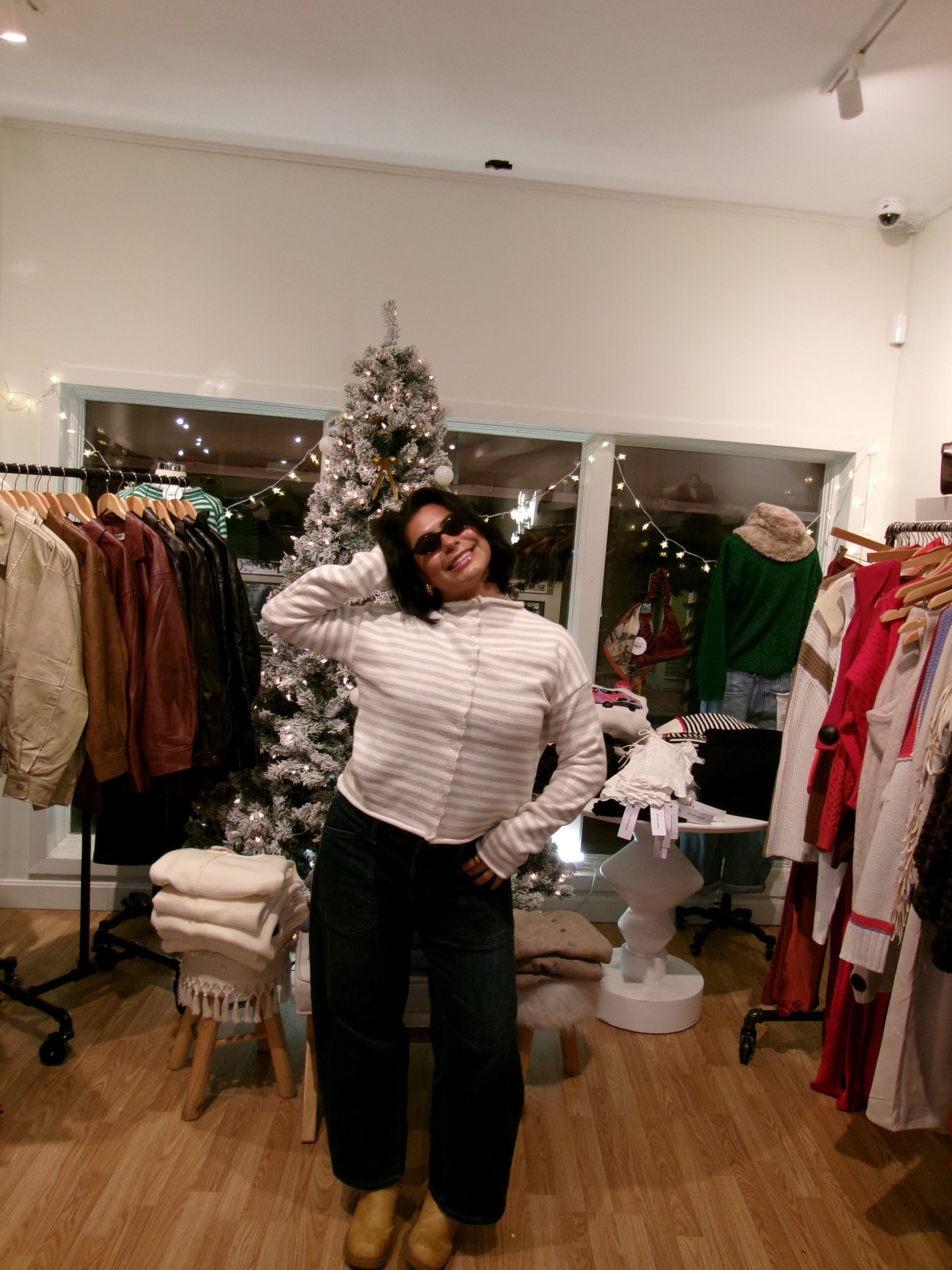 The Cozy Days Cardigan brings together playful light oatmeal and white stripes in a button-up design that’s both cozy and charming. Perfect for layering, this cardigan adds a fun pop of color to your outfit while keeping you snug during cooler moments. Whether you're out and about or relaxing at home, it’s your new favorite go-to for effortless style.