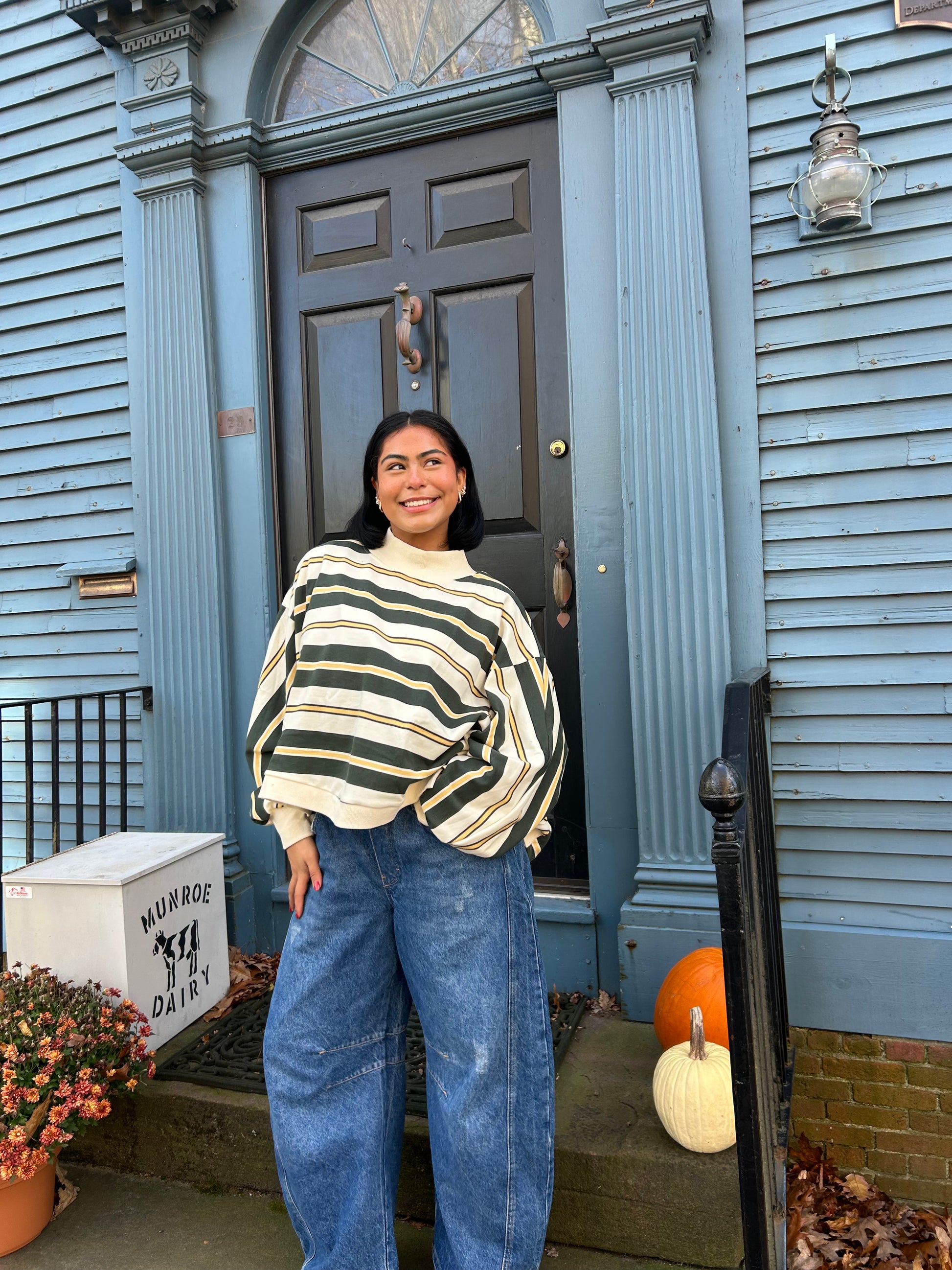 The Credence Crewneck is your ticket to looking put-together while feeling completely at ease. Featuring a mock neck and those gorgeous fall stripes you've been craving, it's cut loose and relaxed with extra room under the arms so you can actually move. Slip it on and discover what happens when comfort and style finally stop fighting each other.