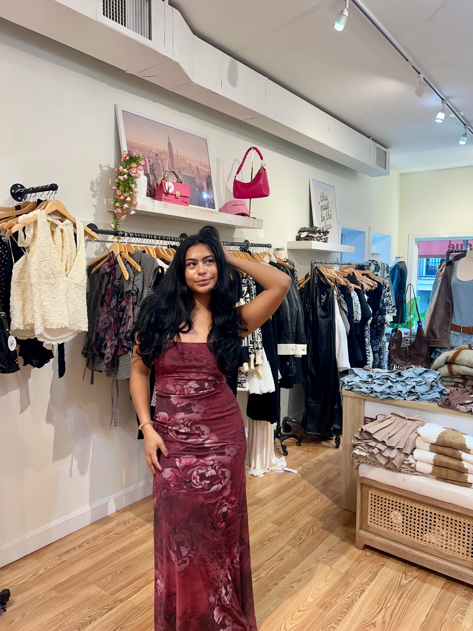 The Dark Roses Maxi features a lovely burgundy rose pattern that gracefully hugs your body, creating a perfect, flattering silhouette. Its elegant design enhances your natural shape while offering a comfortable fit, making it an ideal choice for occasions when you want to feel both beautiful and confident.