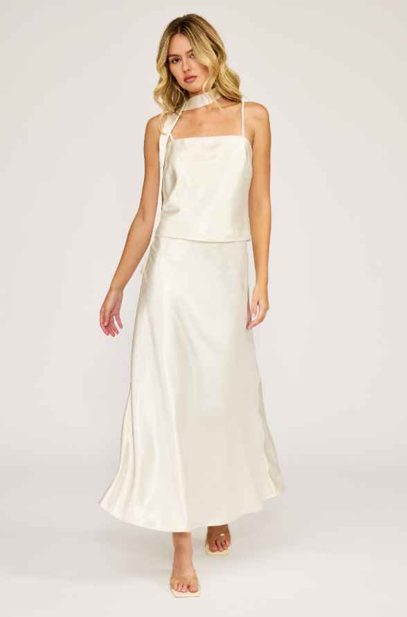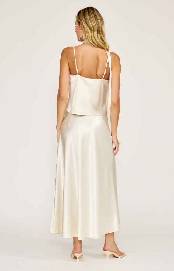 Elevate your wardrobe with the Fitz Midi Skirt—a timeless piece designed to pair seamlessly with the Cyra Neck Tie Top for a coordinated, polished look. Crafted from luxurious satin, this midi skirt drapes beautifully and moves with effortless grace. The smooth finish catches light elegantly, making it perfect for both everyday sophistication and special occasions. Create a complete matching set or style it independently with your favorite pieces. A versatile essential that transcends trends and complements any aesthetic.