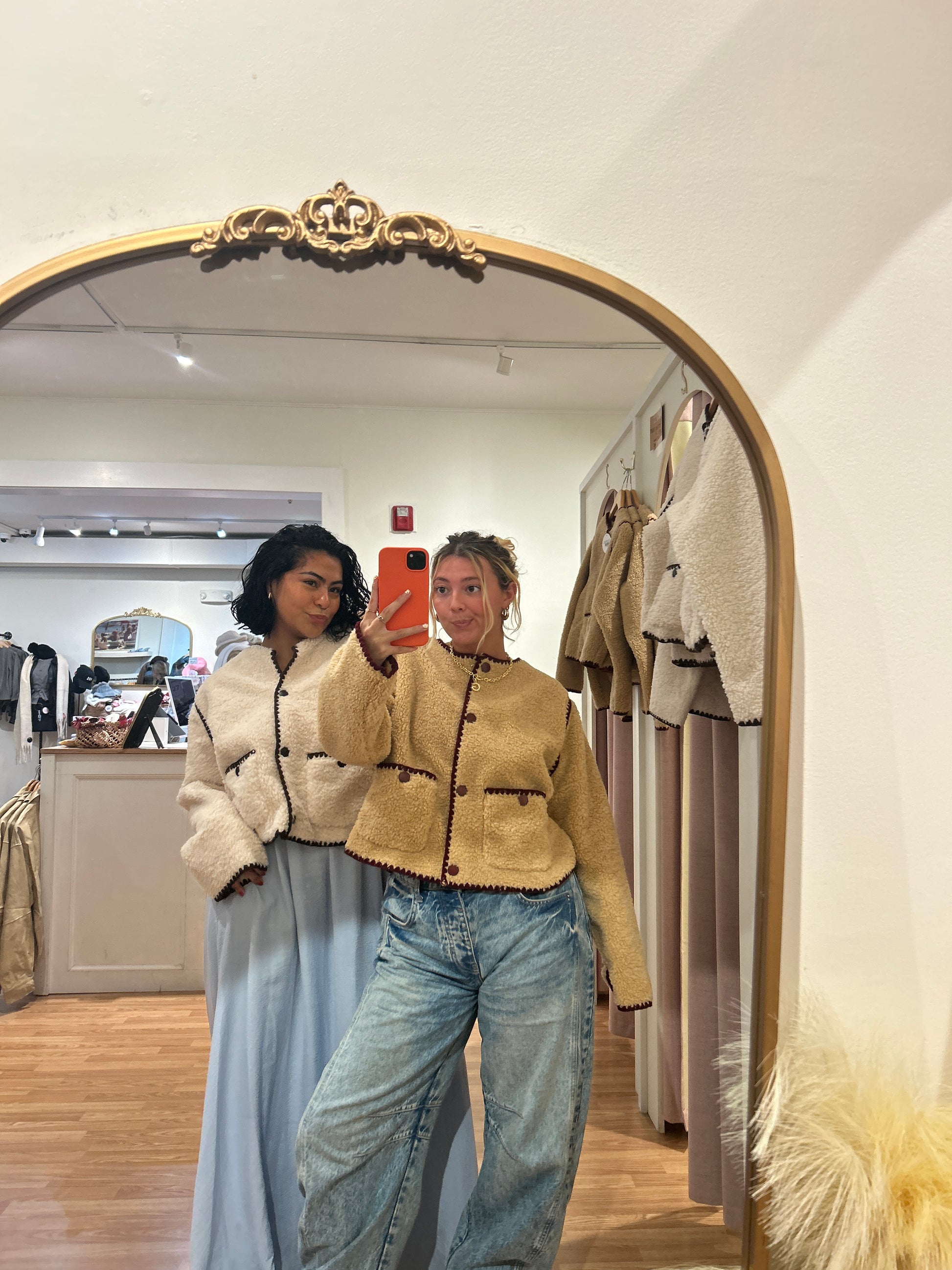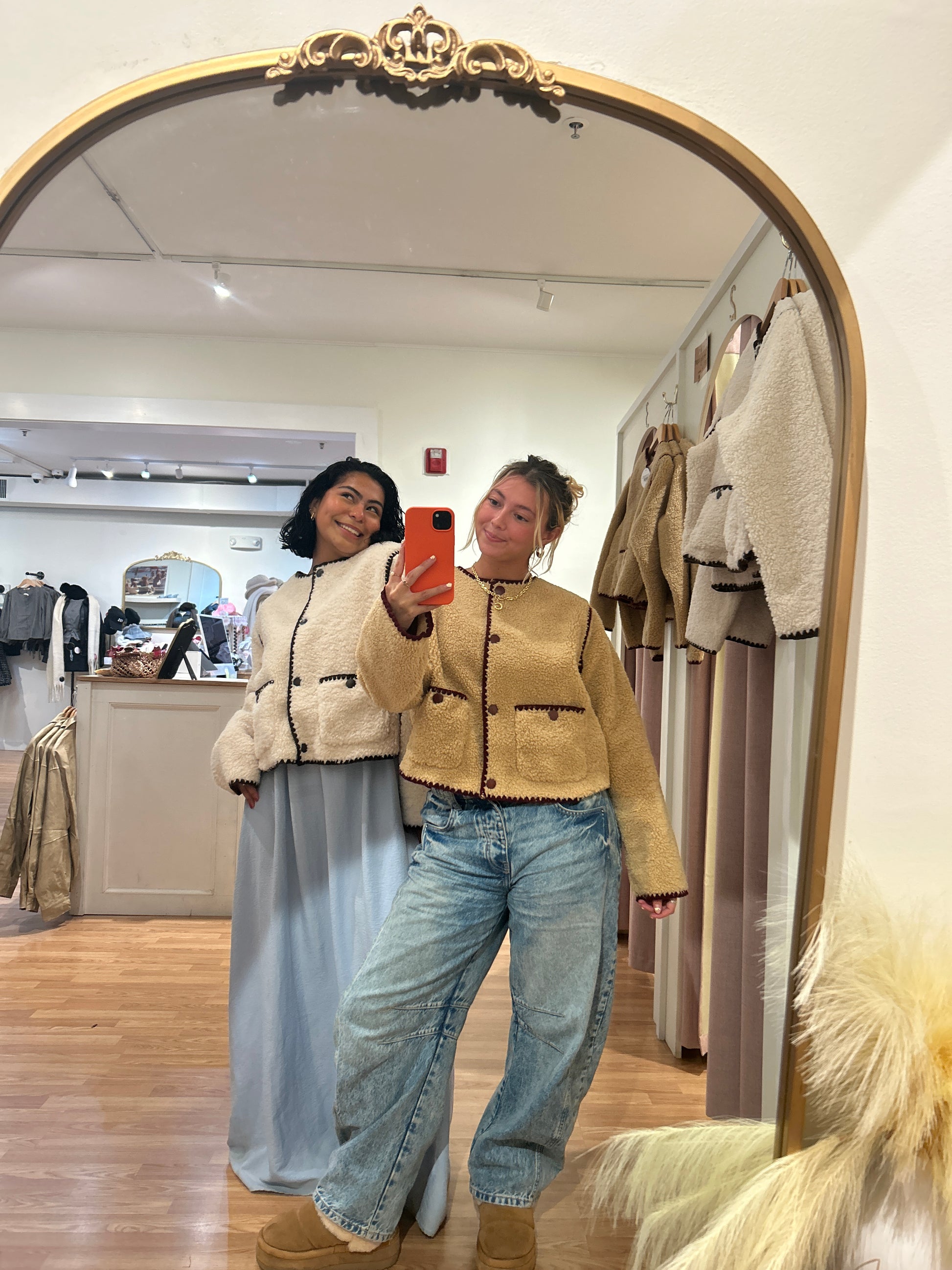 The For The Record Jacket is your new go-to layer for effortless cool. This cropped sherpa style features eye-catching contrasting color trim that adds personality to any outfit. Soft, cozy sherpa fabric keeps you warm without the bulk, while the cropped cut pairs perfectly with high-waisted bottoms. Whether you're heading out for a casual day or dressing up your favorite tee, this jacket strikes the perfect balance between comfort and style. A wardrobe essential that proves the best records are the ones you wear.