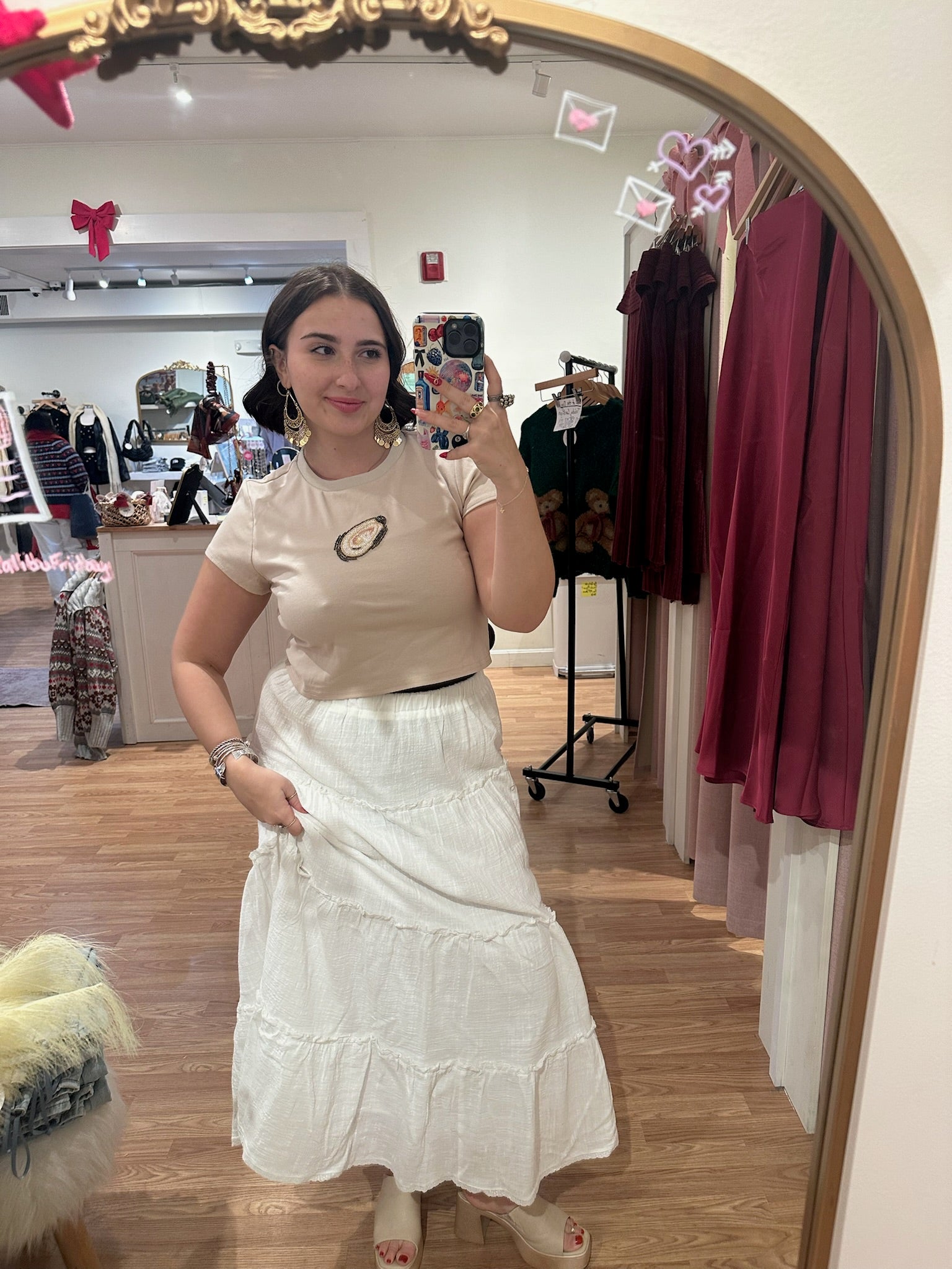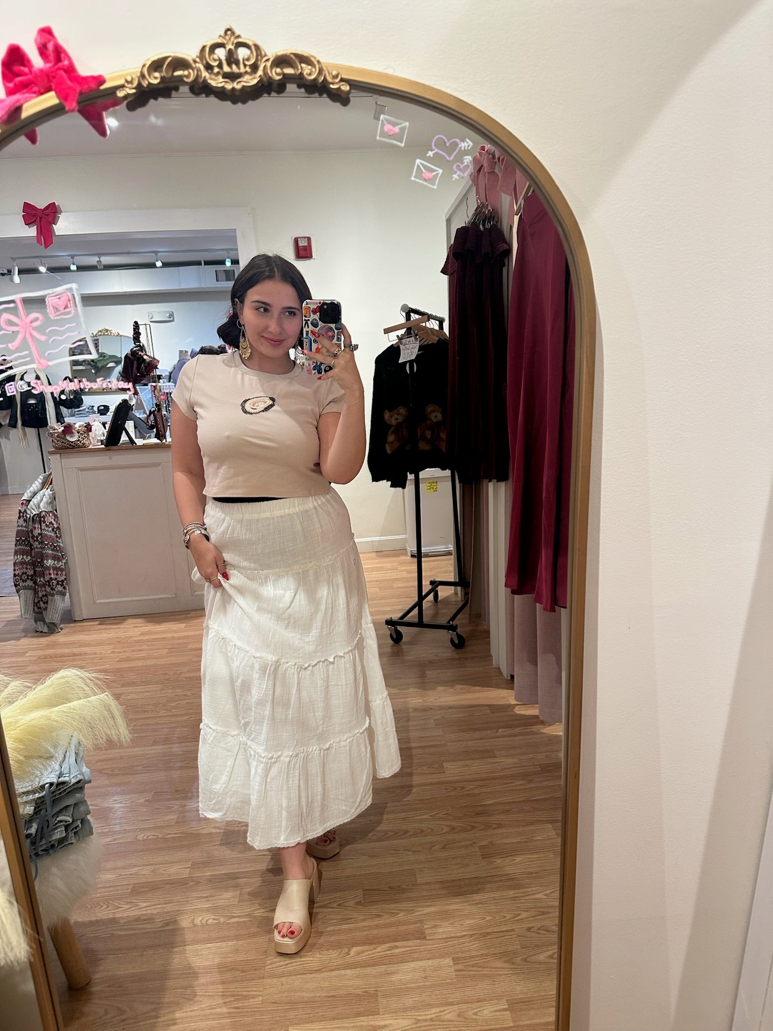Embrace effortless style with the Go With The Flow Skirt. Soft gathered tiers cascade down to create a dreamy, voluminous silhouette that moves with you. The comfortable elastic waistband ensures a relaxed fit that feels as good as it looks—perfect for lazy days, weekend adventures, or whenever you want to feel light and breezy. This flowy maxi is your go-to for laid-back elegance.