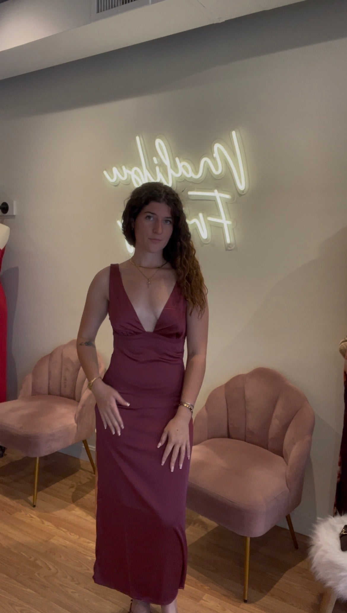The Move Along Midi is your go-to dress for all the special occasions where you want to shine. With its glossy satin finish and rich burgundy hue, this dress adds a playful yet sophisticated touch to your look. Get ready to turn heads and make every moment truly memorable in this stunning piece!