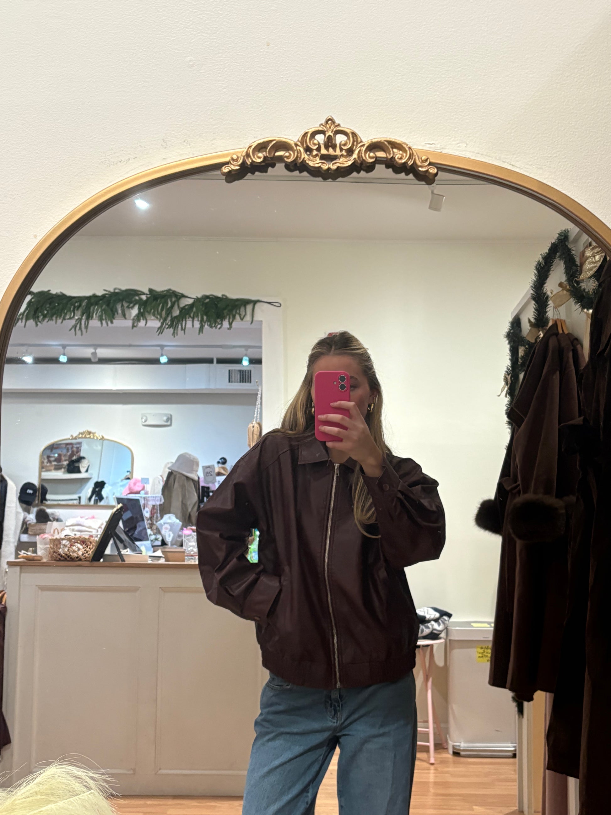 Slip into effortless cool with this leather bomber jacket. The sleek zip-up design keeps things streamlined, while rich leather construction promises durability that lasts. Whether you're heading out for an evening adventure or elevating your everyday look, this jacket brings instant edge and personality. Choose your favorite shade to inject a vibrant pop of color into any outfit—because great style should be fun.
