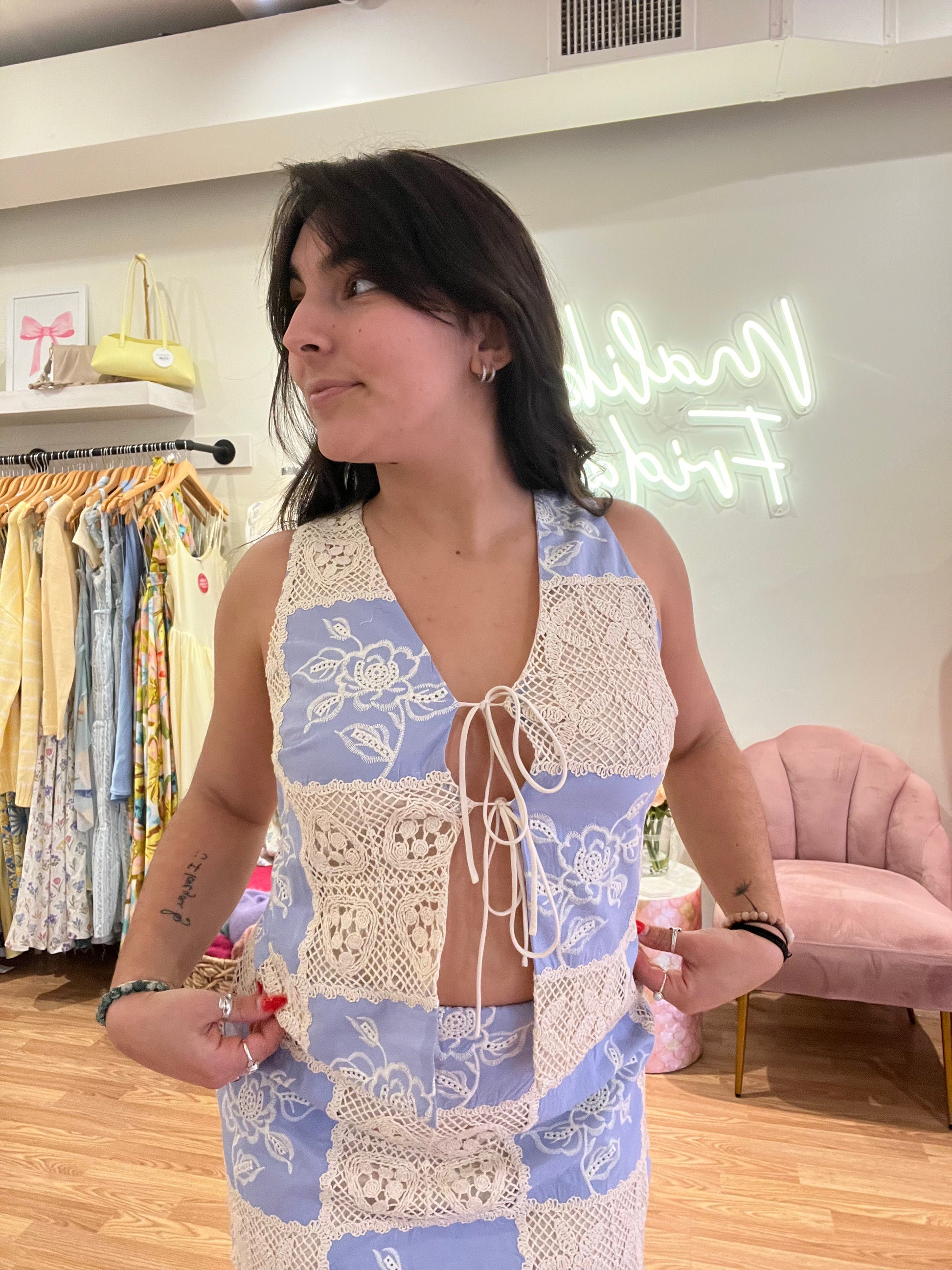 Looking for a top that's as unique as you are? Check out our Prague Top! This playful vest features a trendy tie-front and eye-catching patchwork design. Get ready to turn heads and stand out from the crowd (while still looking effortlessly cool).
