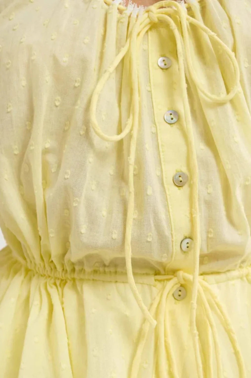 Slip into effortless summer style with the Rosemary Top, a breezy cotton tunic that's equal parts romantic and relaxed. Crafted from lightweight 100% cotton, this airy piece features delicate lace trims, charming micro ties for a customizable fit, and a sweet floral print that whispers vintage vibes. The shell button placket adds a polished touch, while elastic at the back waist keeps everything perfectly in place. Whether you're heading to brunch or a casual getaway, this cinched tunic is your new go-to for laid-back elegance.