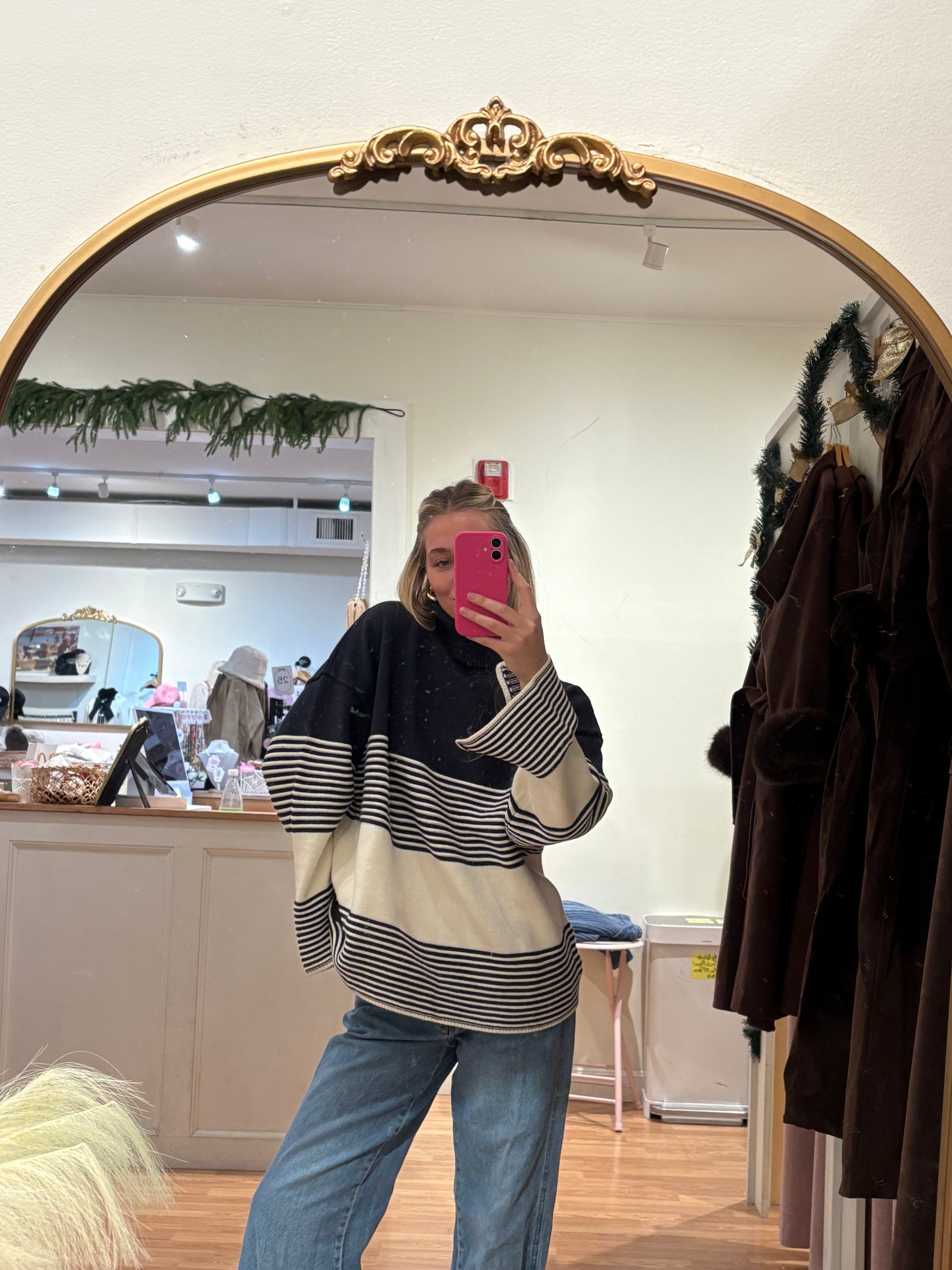Cozy up in this charming striped sweater that brings effortless coastal vibes to your everyday wardrobe. Crafted with a soft, breathable knit, it wraps you in warmth without the bulk. The clever slit detail in the sleeve adds a playful touch while keeping your arms free to move—perfect for layering or wearing solo on breezy days. Whether you're strolling through town or settling in for a relaxed evening, this sweater strikes the ideal balance between comfort and style.