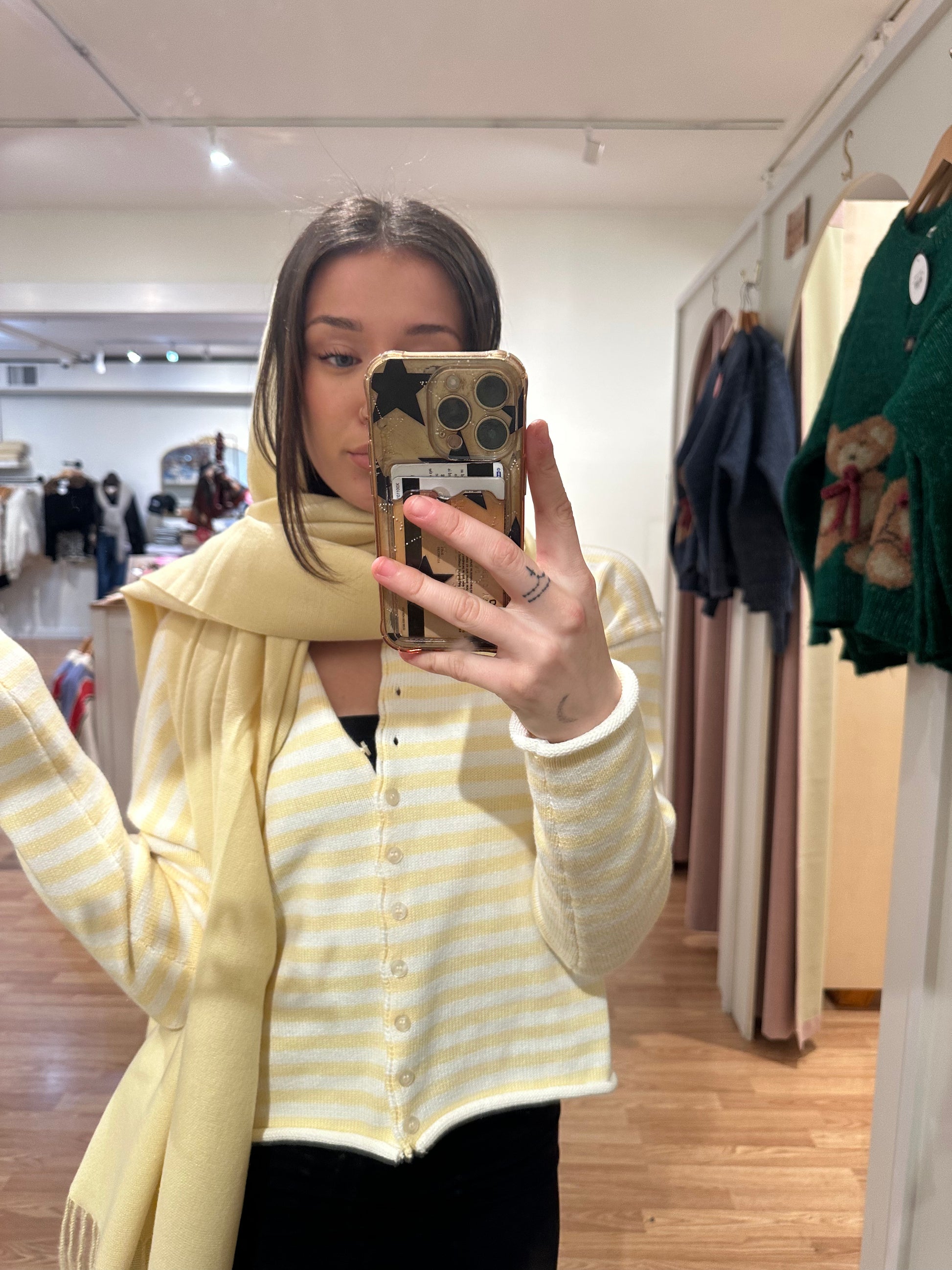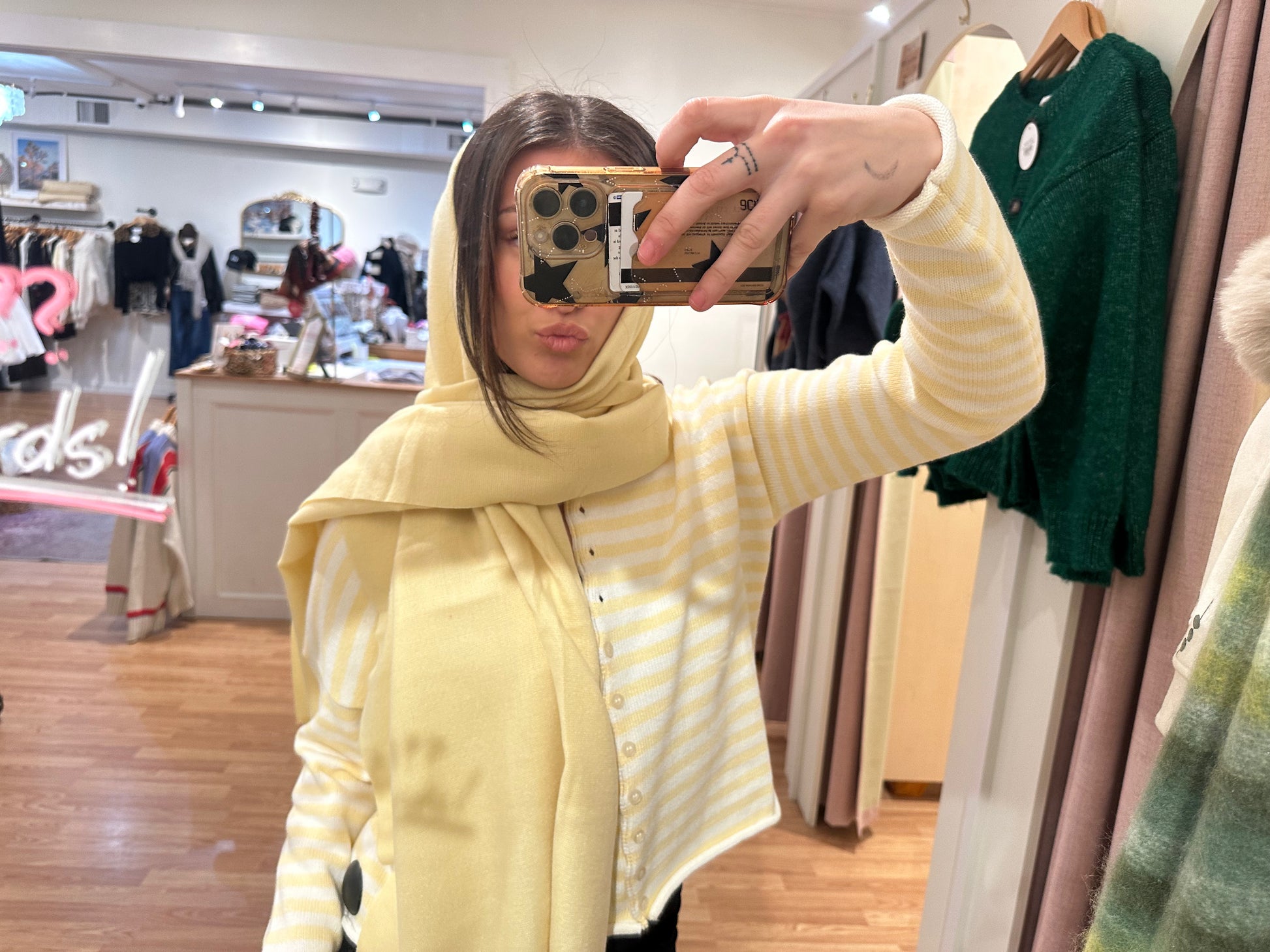 Wrap yourself in effortless charm with the Skylar Scarf. This delightfully soft accessory features adorable frilled details along the bottom, adding a touch of whimsy to any outfit. Perfect for layering on chilly days or draping casually over your shoulders, it's the cozy companion you'll reach for again and again. Whether you're curling up indoors or stepping out for a stroll, this sweet scarf brings warmth and personality to your everyday style.