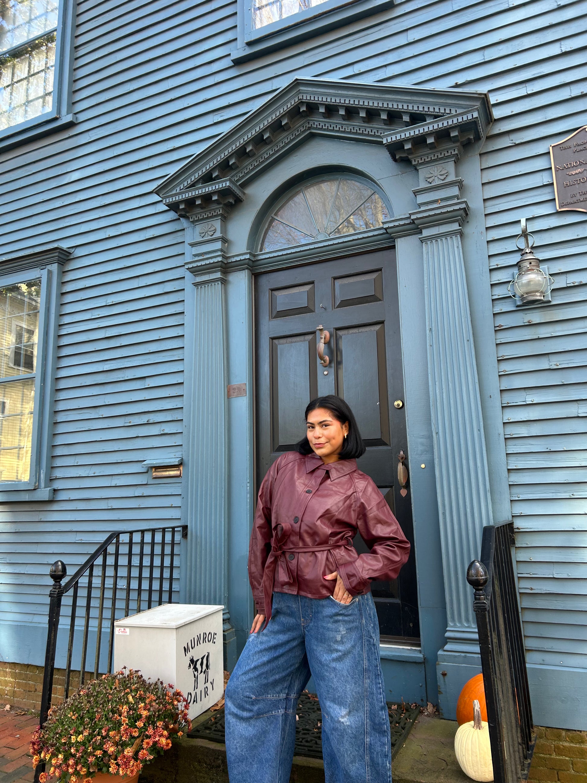 Slip into effortless autumn style with this wine-hued leather jacket—your new go-to for crisp evenings and weekend adventures. The rich, sophisticated color pairs beautifully with everything from denim to dresses, while the included belt cinches your silhouette for a polished finish. Buttery-soft leather and timeless tailoring make this jacket a wardrobe essential that transitions seamlessly from season to season. Dress it up or down; either way, you'll feel like the main character.